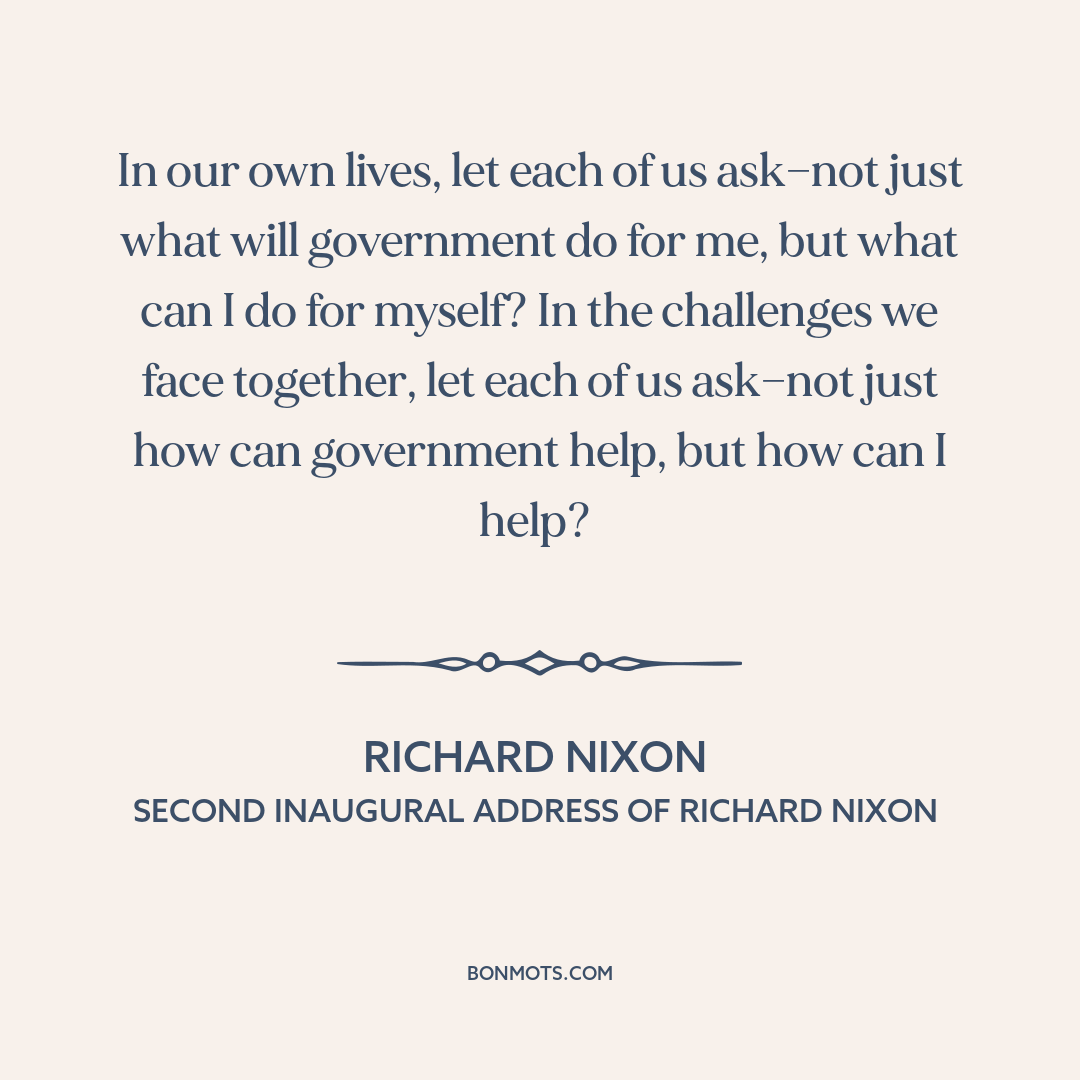In our own lives, let each of us ask—not just what will government do for me, but what can I do for myself? In the challenges we face together, let each of us ask—not just how can government help, but how can I help?