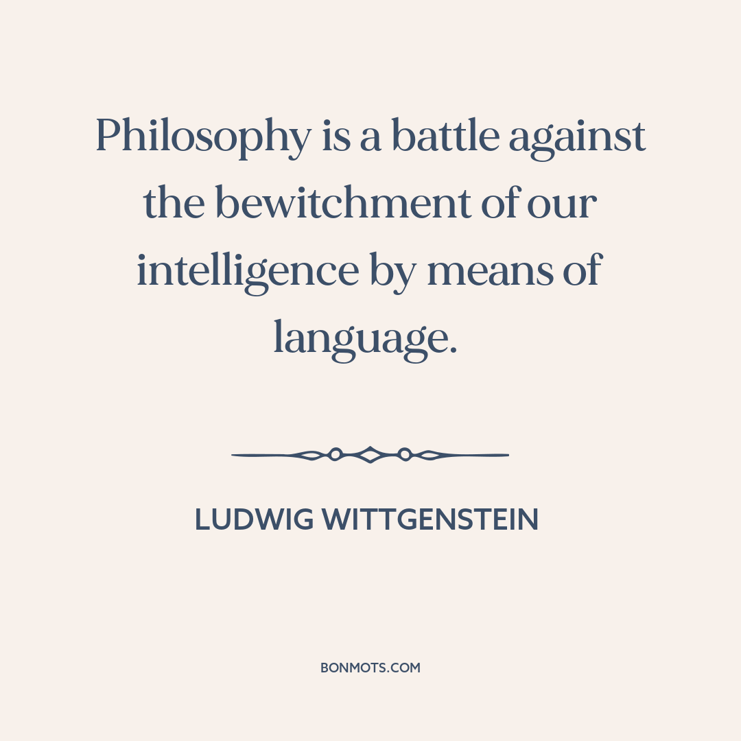 Philosophy is a battle against the bewitchment of our intelligence by means of language.