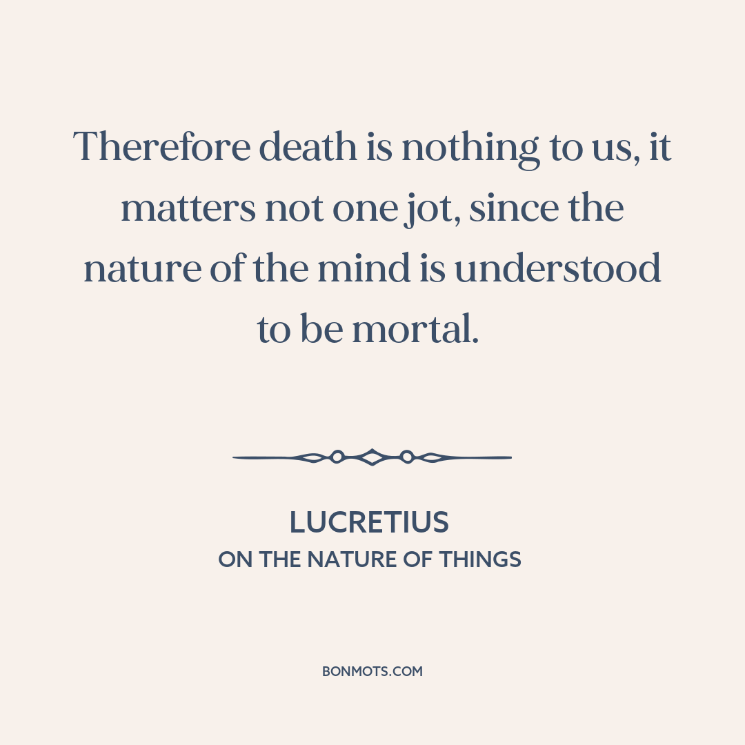 Therefore death is nothing to us, it matters not one jot, since the nature of the mind is understood to be mortal.