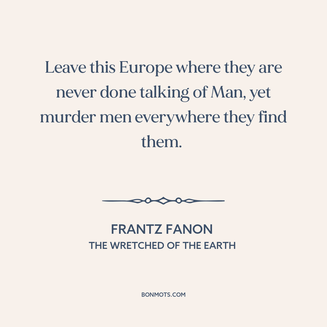 Leave this Europe where they are never done talking of Man, yet murder men everywhere they find them.