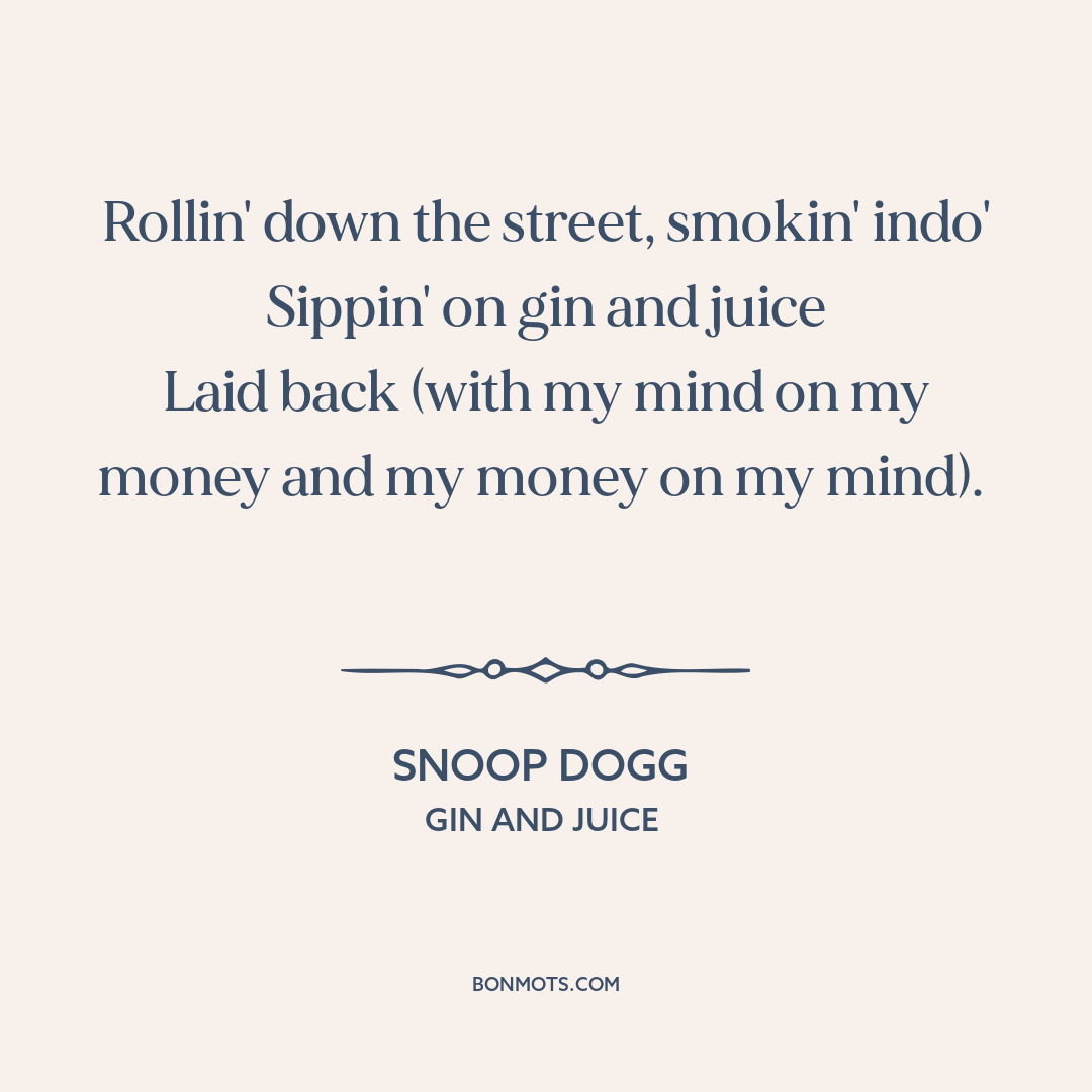 Snoop Dogg. "Gin and Juice." Doggystyle. Death Row Records/Interscope Records, 1993.