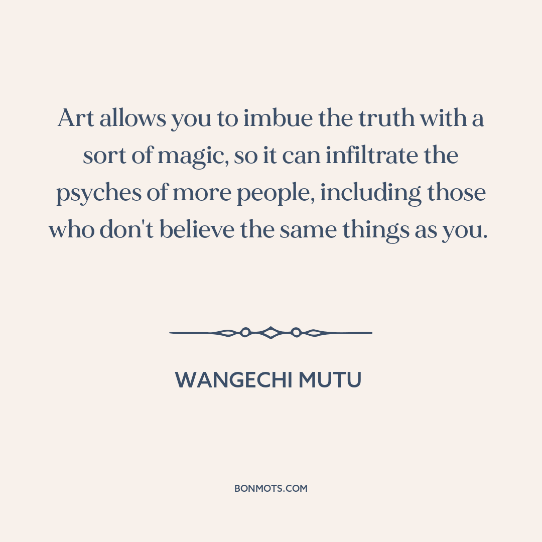 Art allows you to imbue the truth with a sort of magic, so it can infiltrate the psyches of more people, including those who don't believe the same things as you.