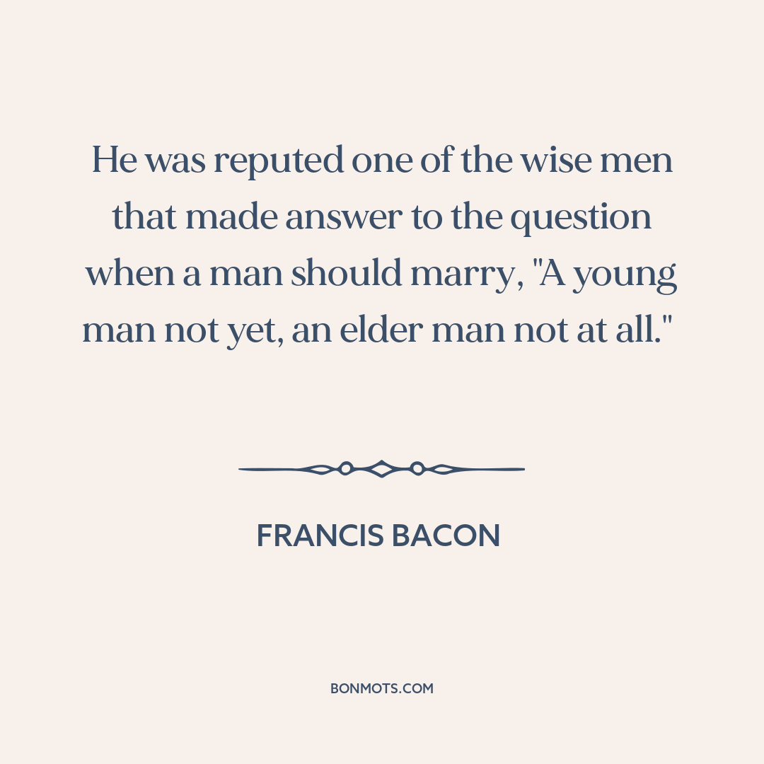 He was reputed one of the wise men that made answer to the question when a man should marry, "A young man not yet, an elder man not at all."