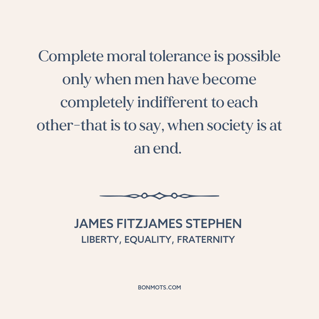 Complete moral tolerance is possible only when men have become completely indifferent to each other-that is to say, when society is at an end.