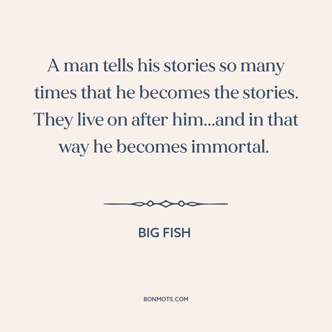 A man tells his stories so many times that he becomes the stories. They live on after him...and in that way he becomes immortal.