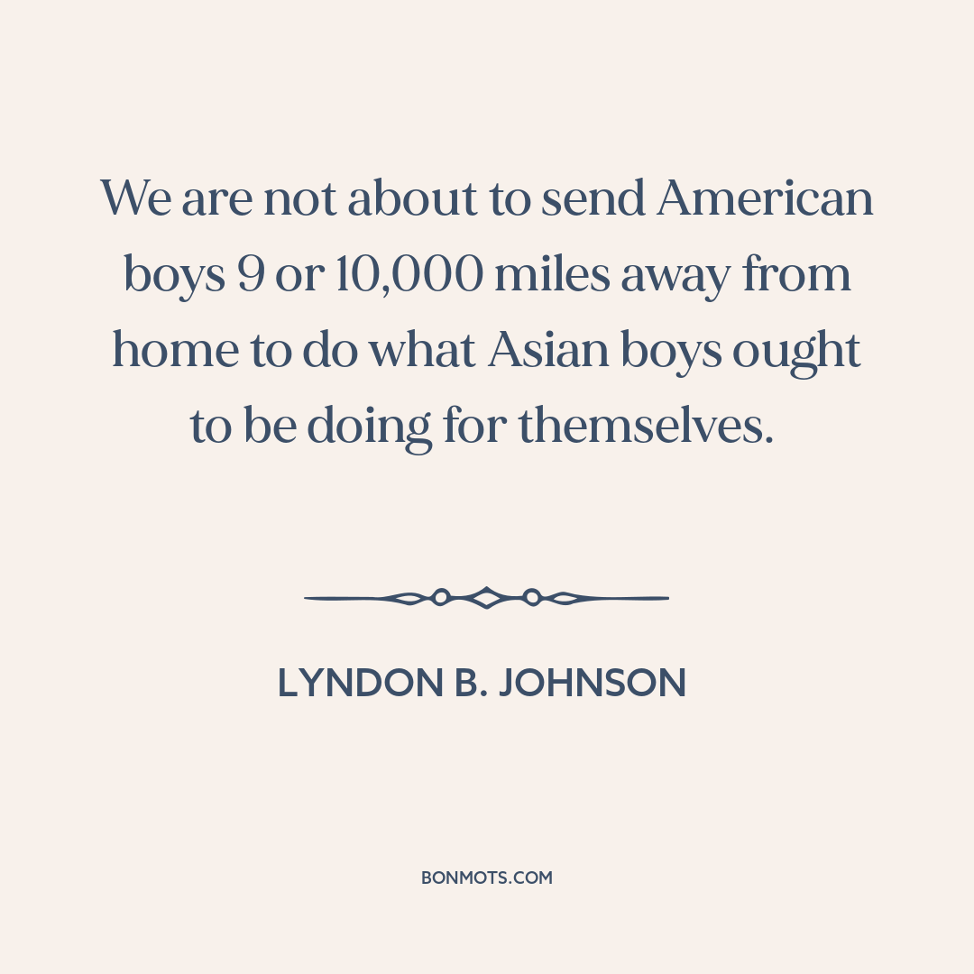 We are not about to send American boys 9 or 10,000 miles away from home to do what Asian boys ought to be doing for themselves.