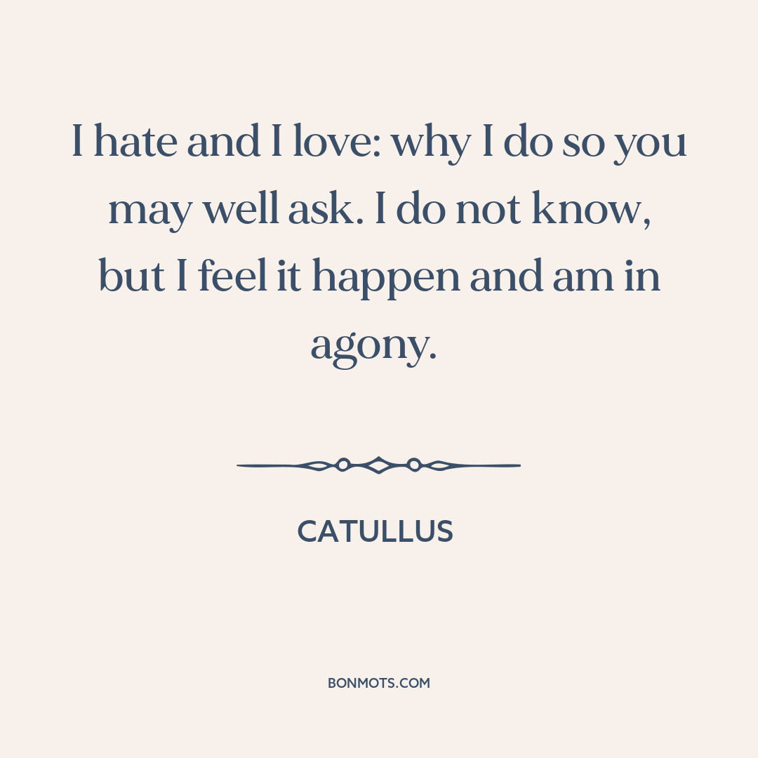 I hate and I love: why I do so you may well ask. I do not know, but I feel it happen and am in agony.