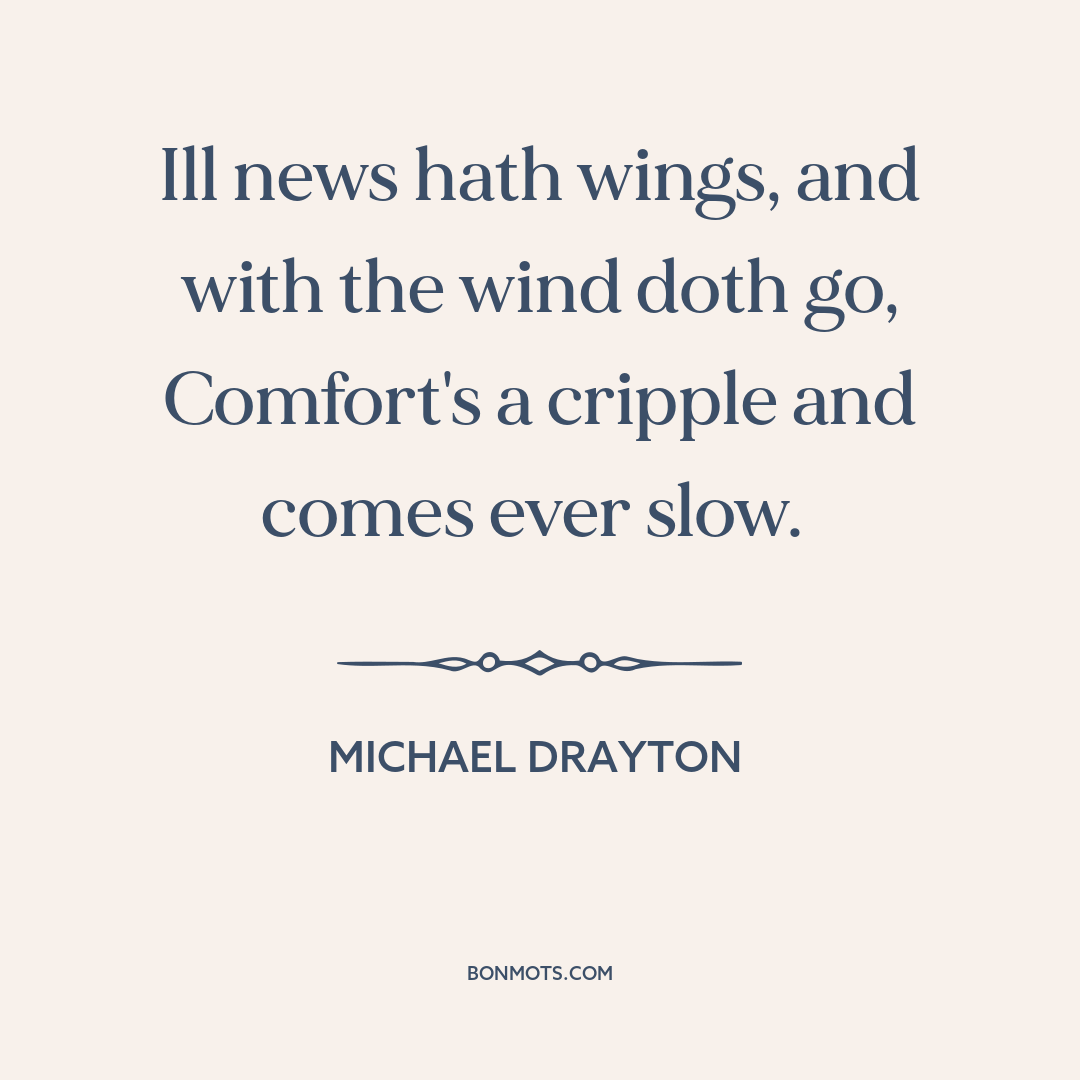 Ill news hath wings, and with the wind doth go,