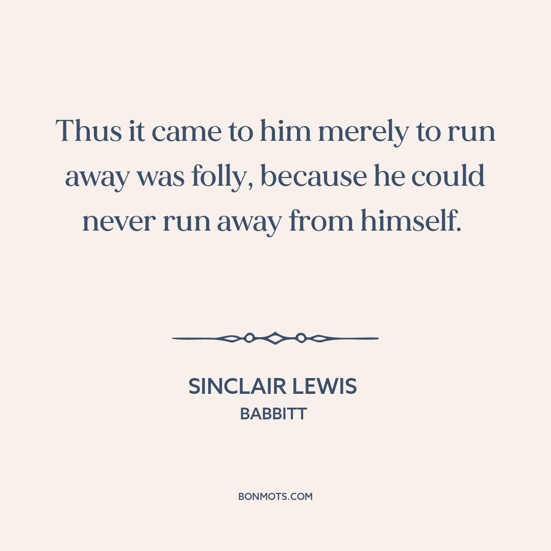 Thus it came to him merely to run away was folly, because he could never run away from himself.