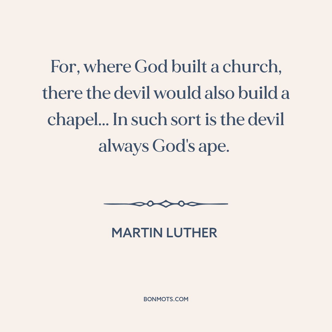 For, where God built a church, there the devil would also build a chapel... In such sort is the devil always God's ape.