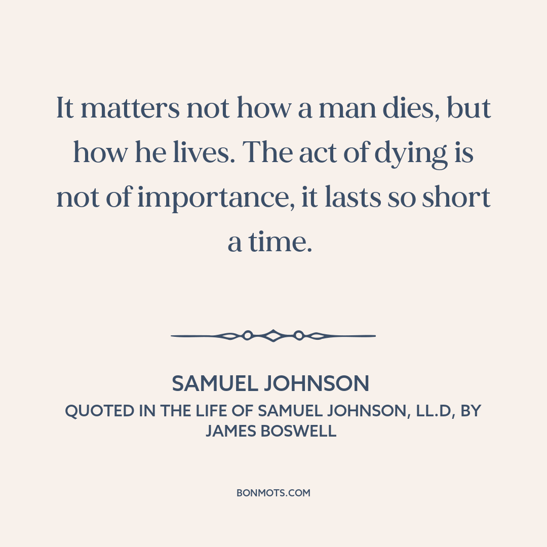 It matters not how a man dies, but how he lives. The act of dying is not of importance, it lasts so short a time.