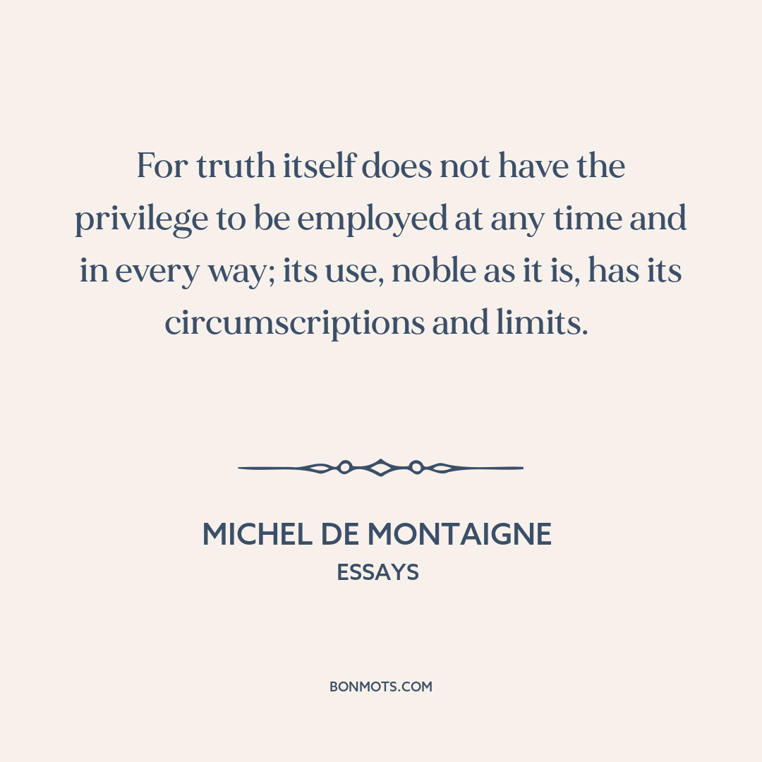For truth itself does not have the privilege to be employed at any time and in every way; its use, noble as it is, has its circumscriptions and limits.