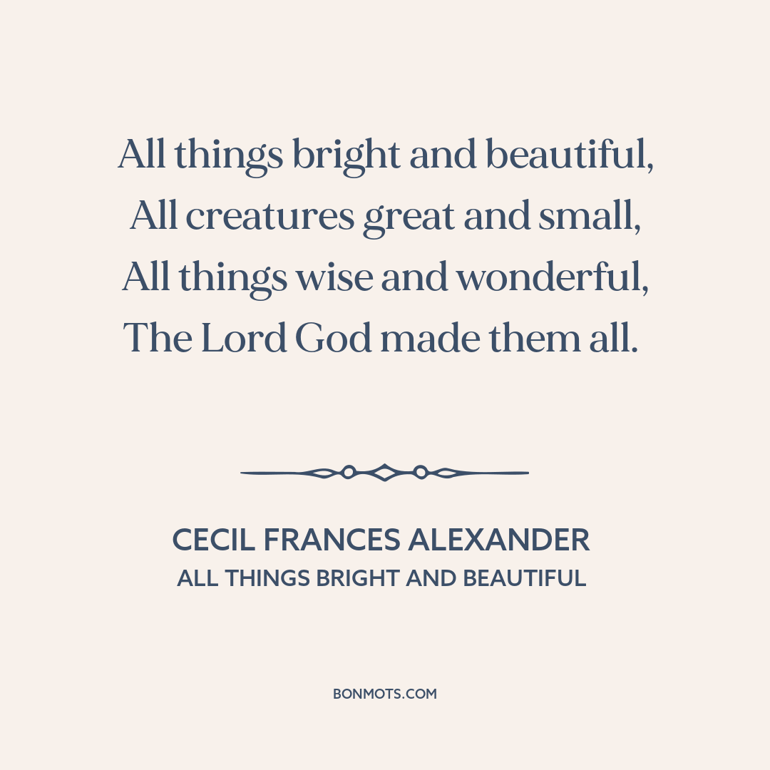 Alexander, Cecil Frances. "All Things Bright and Beautiful." Hymns for Little Children. Joseph Masters, c. 1848.