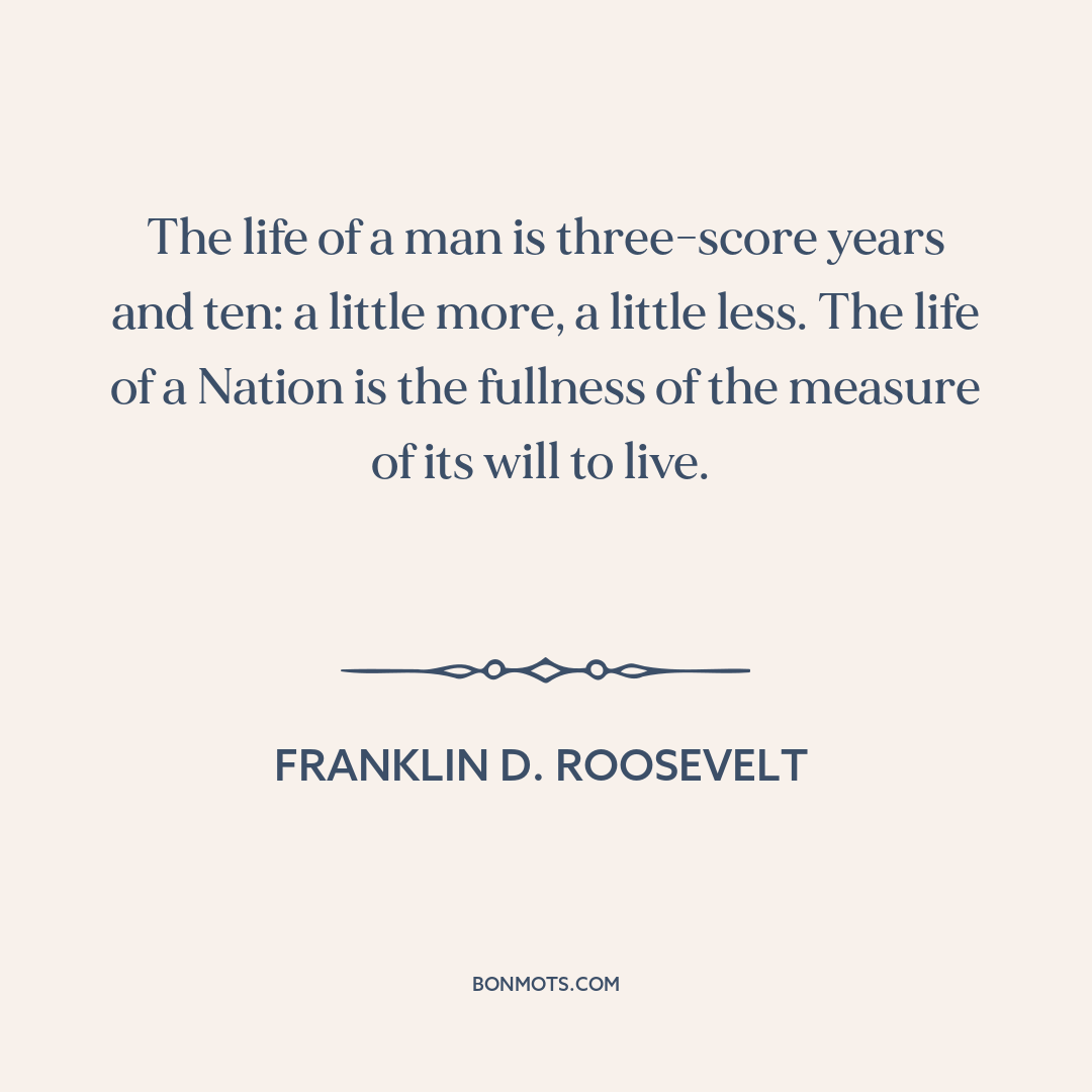 The life of a man is three-score years and ten: a little more, a little less. The life of a Nation is the fullness of the measure of its will to live.