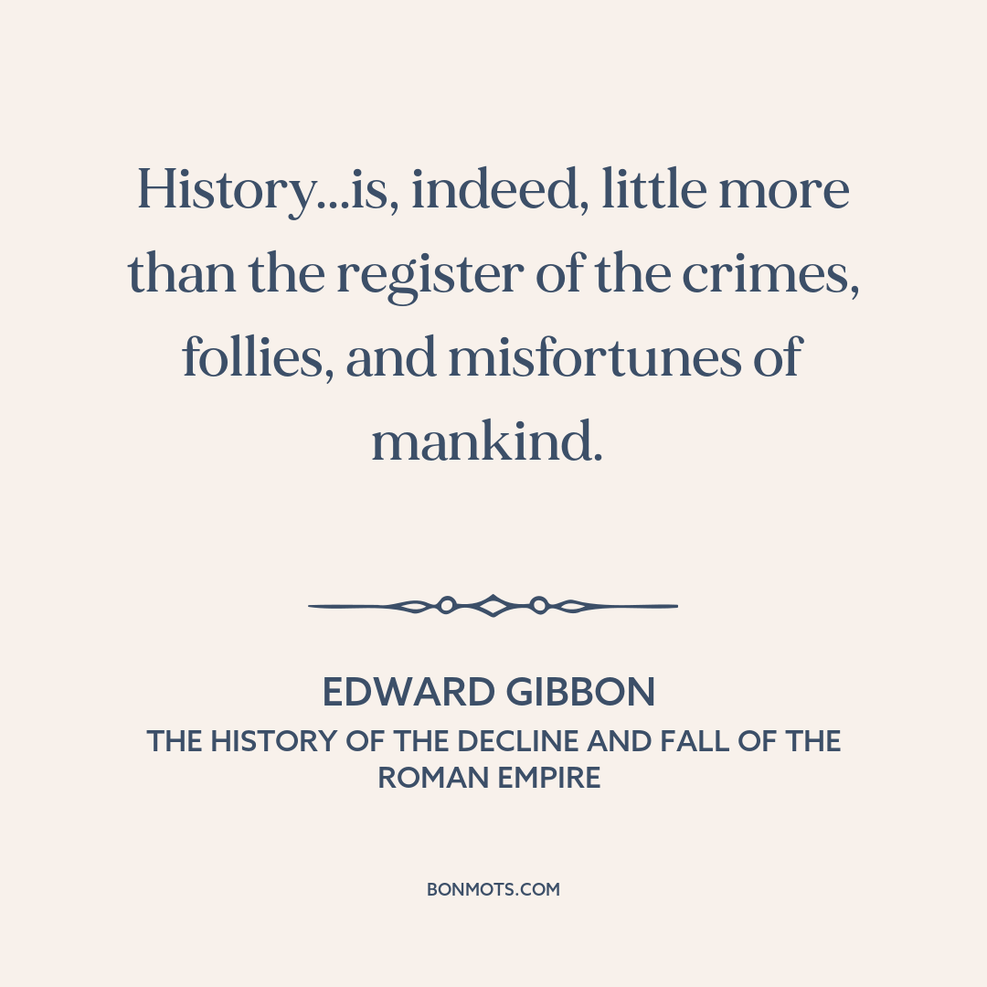 History...is, indeed, little more than the register of the crimes, follies, and misfortunes of mankind.