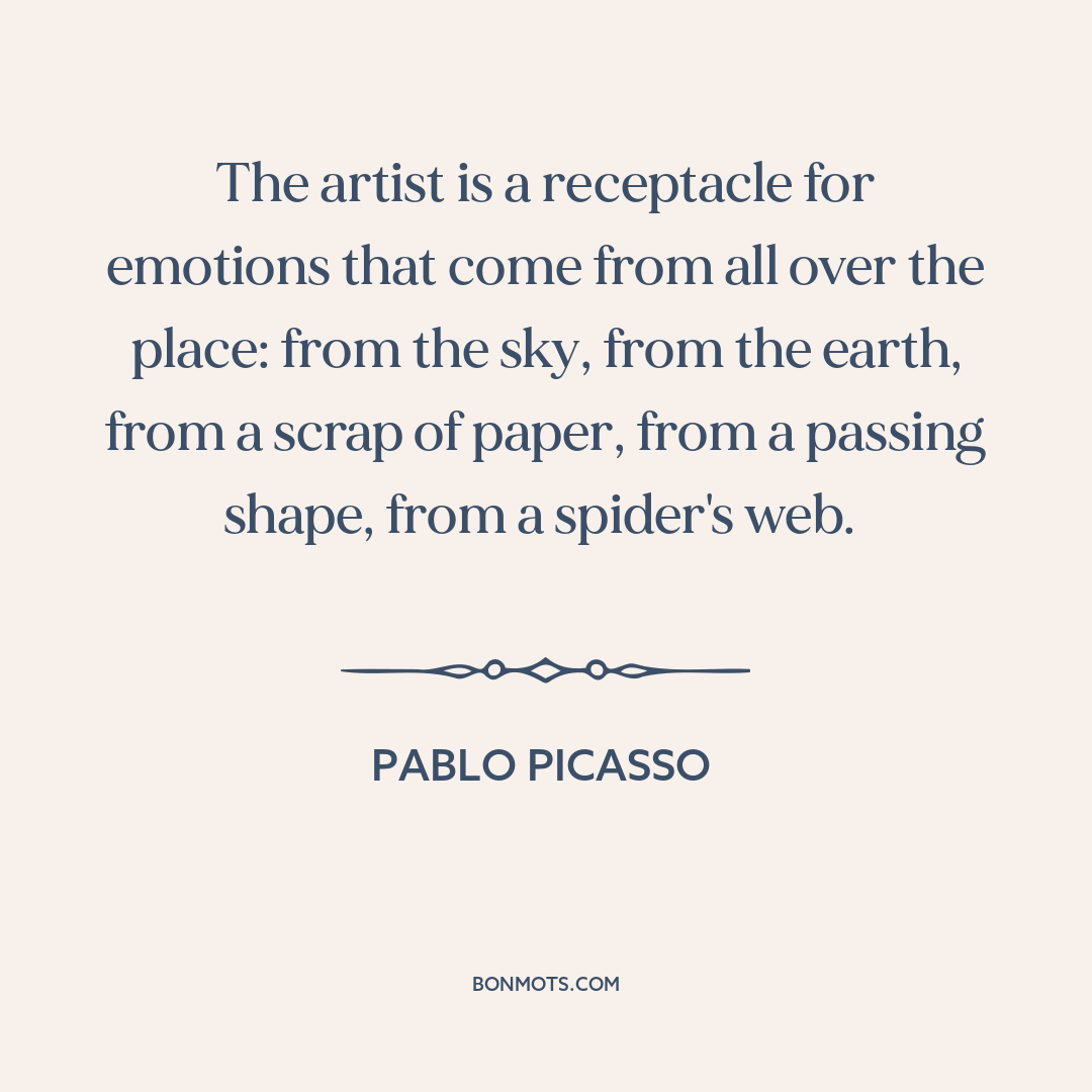 The artist is a receptacle for emotions that come from all over the place: from the sky, from the earth, from a scrap of paper, from a passing shape, from a spider's web.