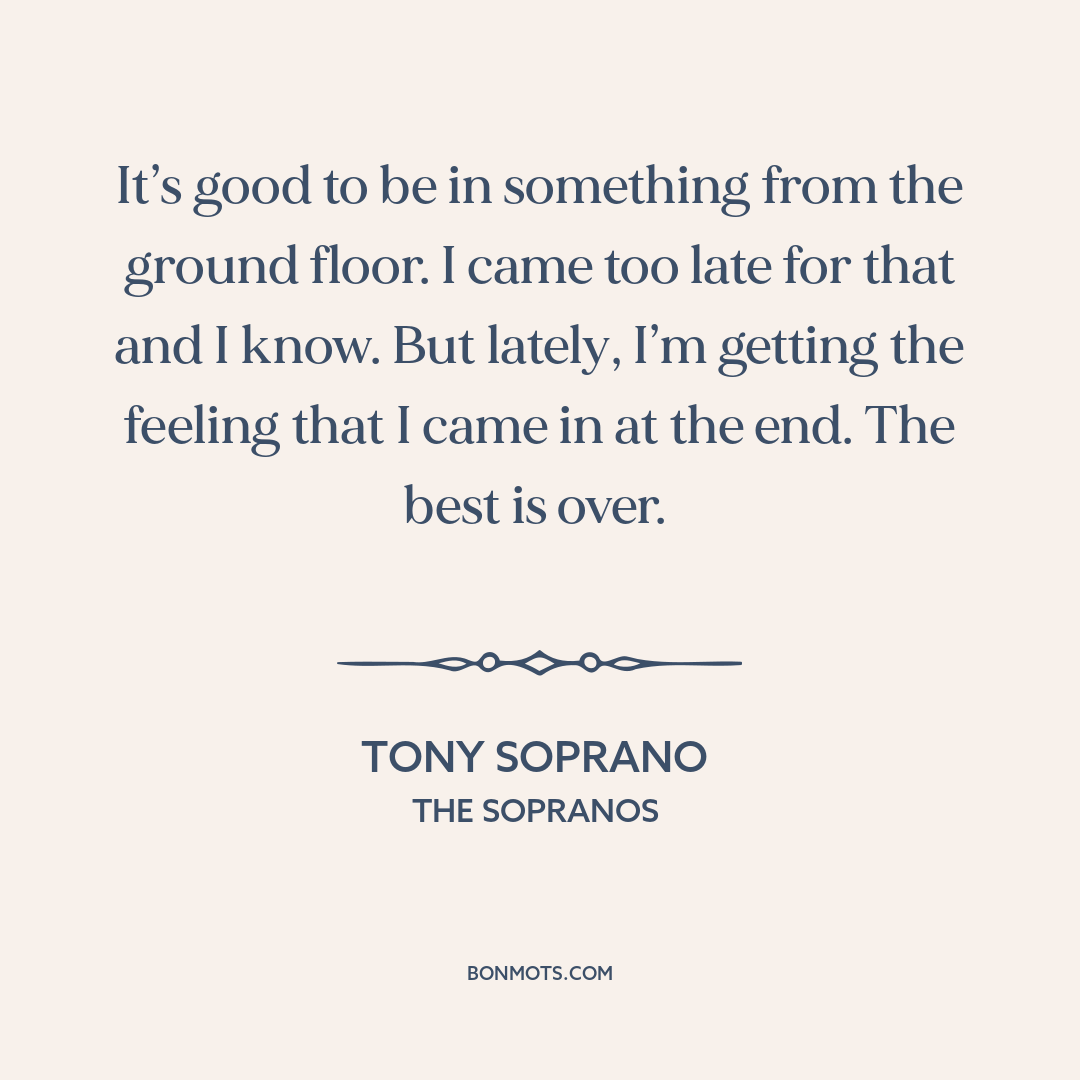 It’s good to be in something from the ground floor. I came too late for that and I know. But lately, I’m getting the feeling that I came in at the end. The best is over.