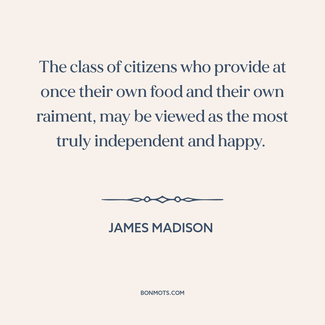 The class of citizens who provide at once their own food and their own raiment, may be viewed as the most truly independent and happy.