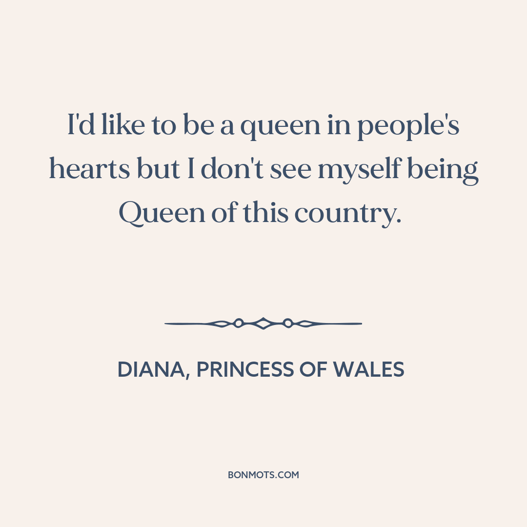 I'd like to be a queen in people's hearts but I don't see myself being Queen of this country.