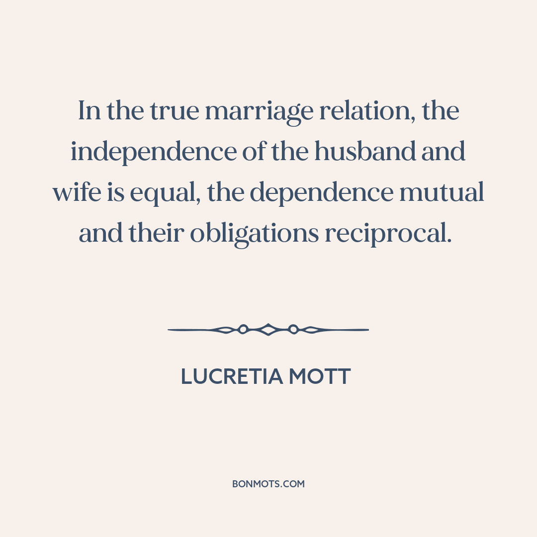 In the true marriage relation, the independence of the husband and wife is equal, the dependence mutual and their obligations reciprocal.