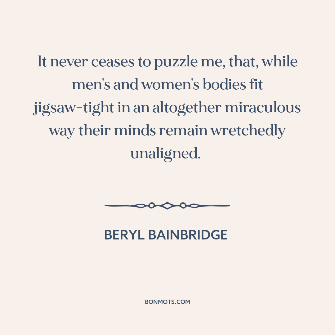 It never ceases to puzzle me, that, while men's and women's bodies fit jigsaw-tight in an altogether miraculous way their minds remain wretchedly unaligned.