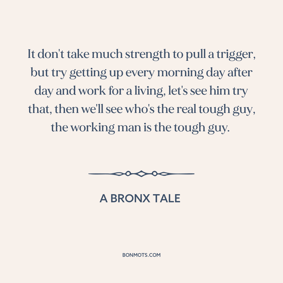 It don't take much strength to pull a trigger, but try getting up every morning day after day and work for a living, let's see him try that, then we'll see who's the real tough guy, the working man is the tough guy.