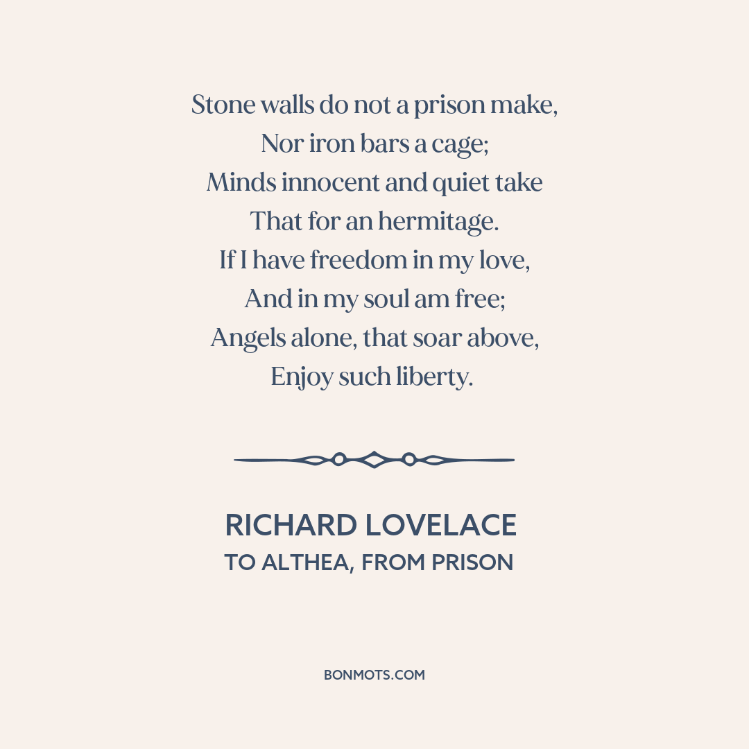 Lovelace, Richard. "To Althea, from Prison." Lucasta. London: William Hazlitt, 1649, I. 25.