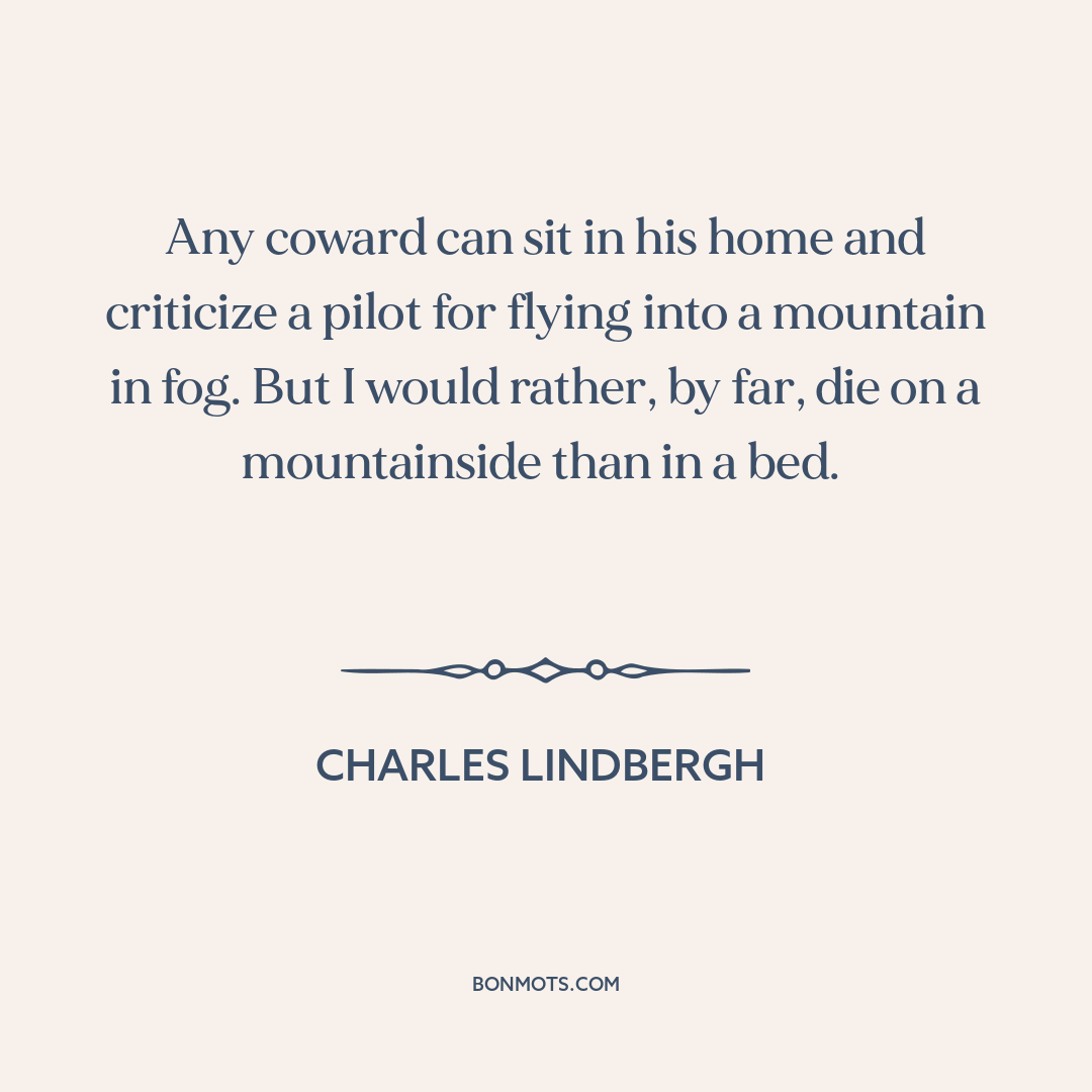 Any coward can sit in his home and criticize a pilot for flying into a mountain in fog. But I would rather, by far, die on a mountainside than in a bed.