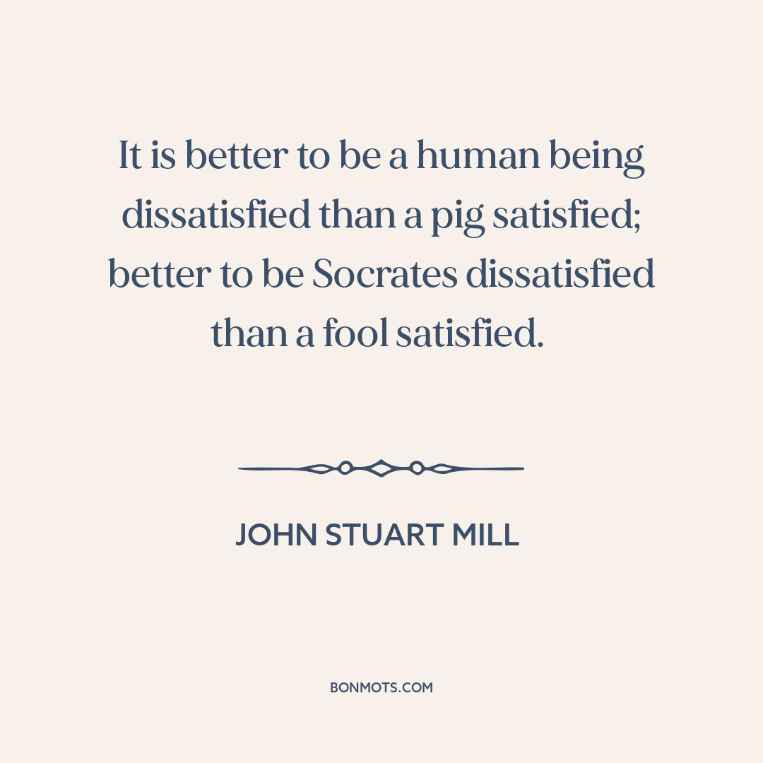 It is better to be a human being dissatisfied than a pig satisfied; better to be Socrates dissatisfied than a fool satisfied.