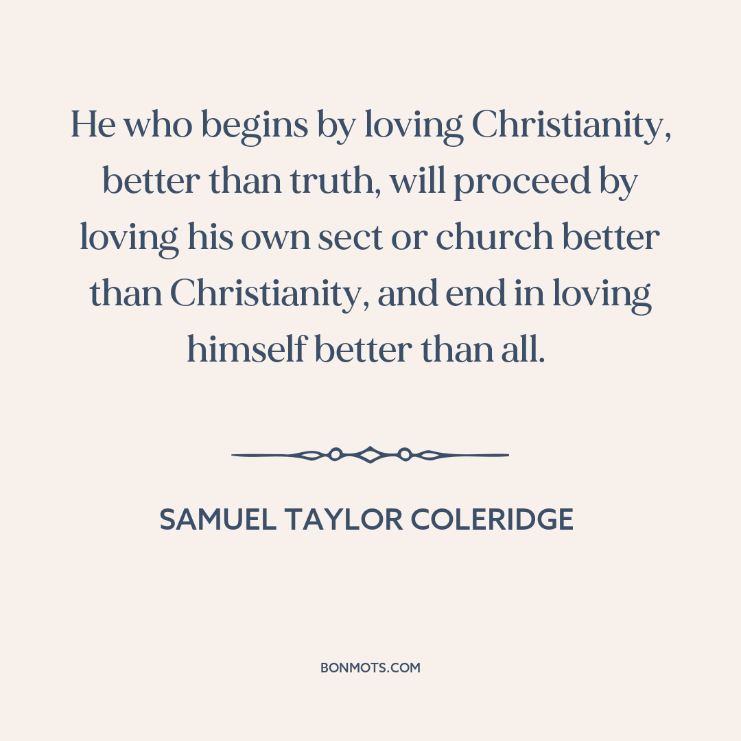 He who begins by loving Christianity, better than truth, will proceed by loving his own sect or church better than Christianity, and end in loving himself better than all.
