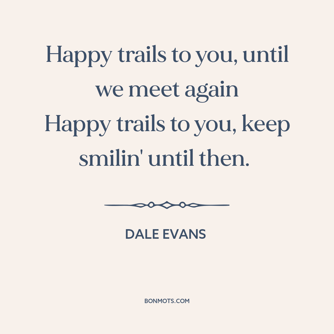 Evans, Dale. “Happy Trails.” Performed by Roy Rogers and Dale Evans. RCA Victor, 1952.