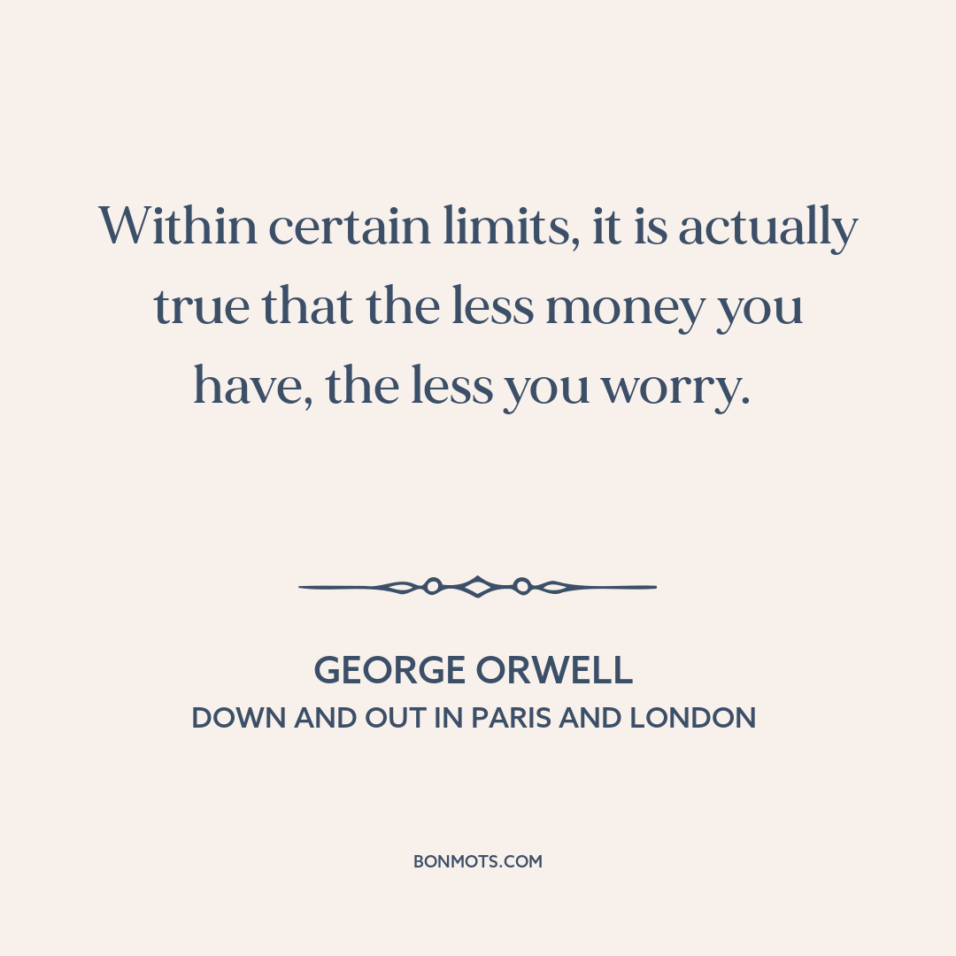 Within certain limits, it is actually true that the less money you have, the less you worry.