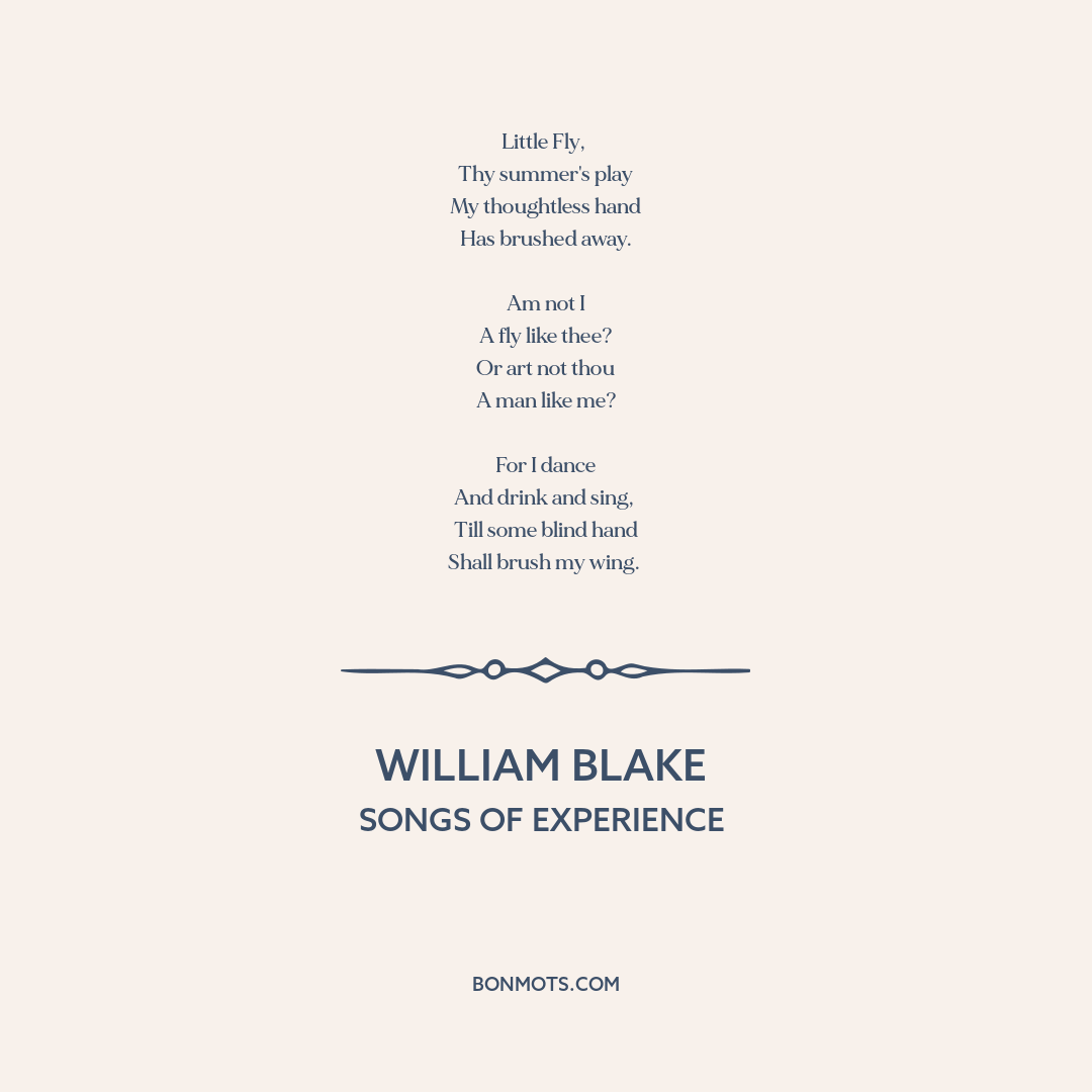 Blake, William. "The Fly." Songs of Innocence and of Experience Shewing the Two Contrary States of the Human Soul. London, 1794.