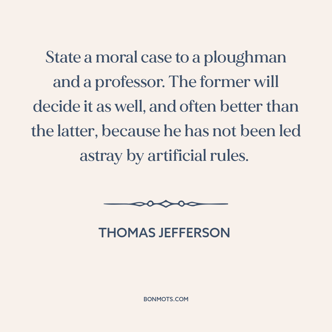 State a moral case to a ploughman and a professor. The former will decide it as well, and often better than the latter, because he has not been led astray by artificial rules.