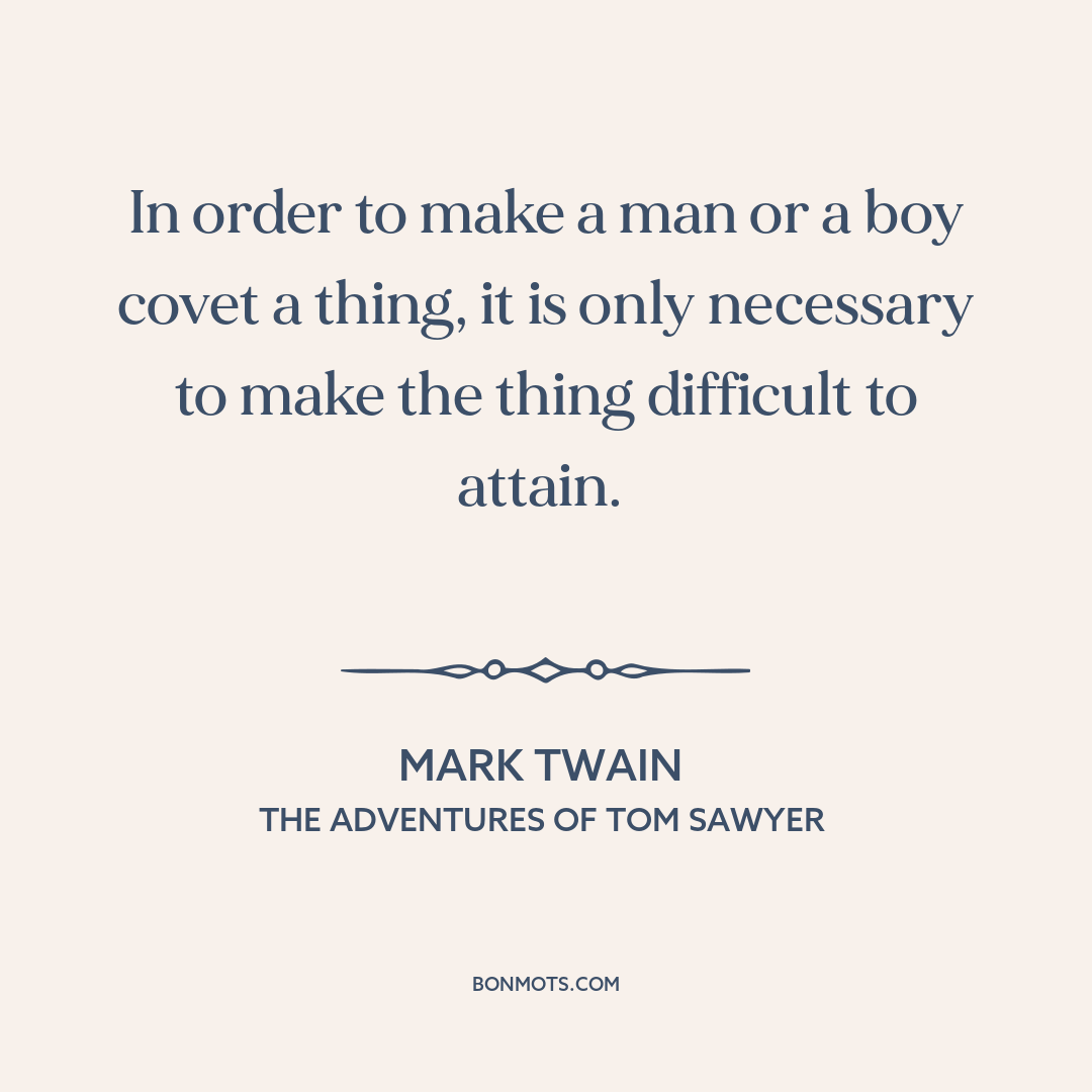 In order to make a man or a boy covet a thing, it is only necessary to make the thing difficult to attain.