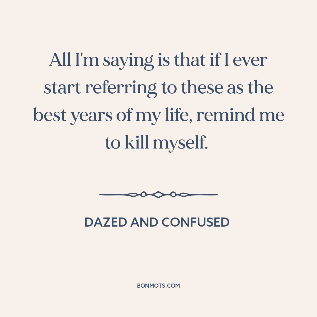 All I'm saying is that if I ever start referring to these as the best years of my life, remind me to kill myself.