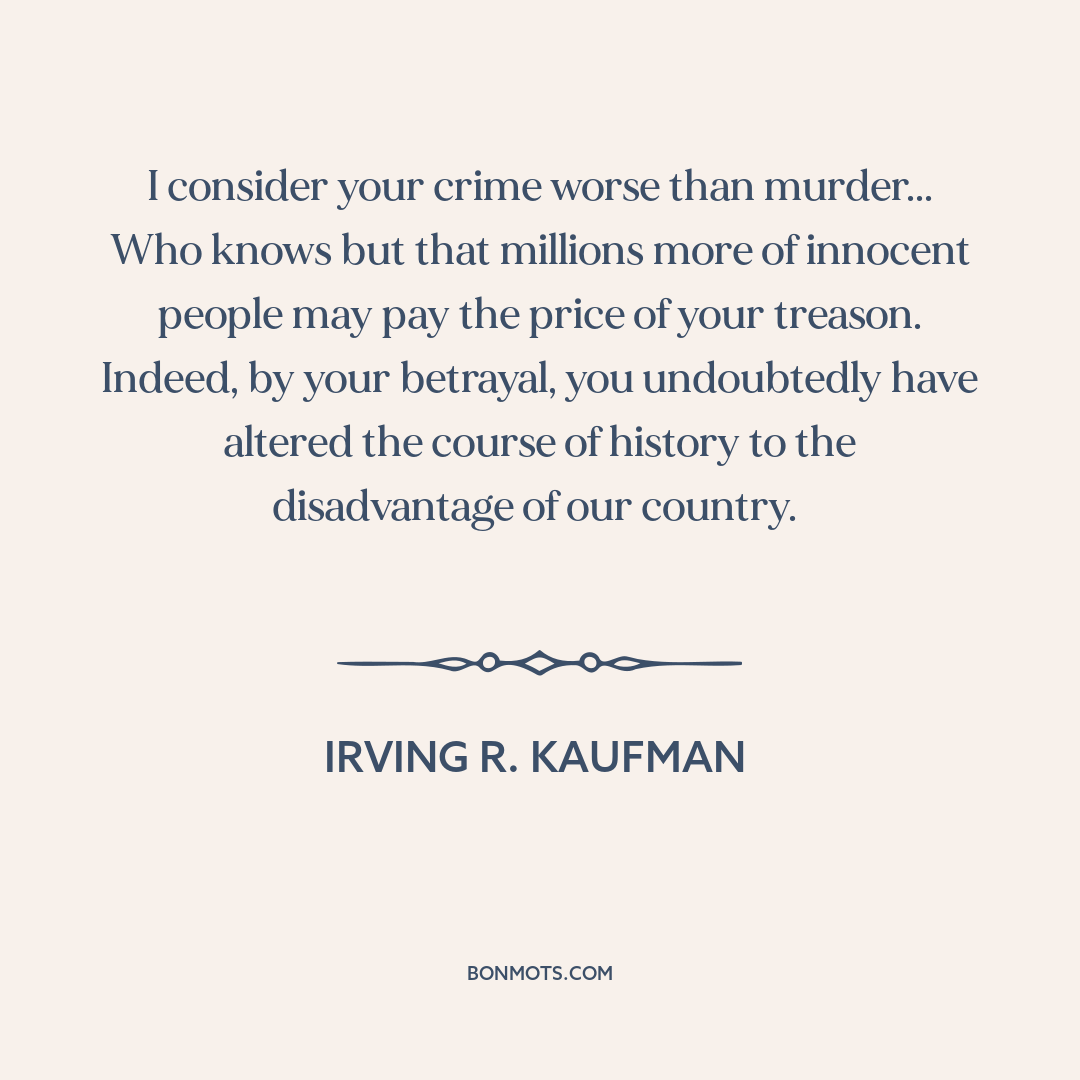 I consider your crime worse than murder... Who knows but that millions more of innocent people may pay the price of your treason. Indeed, by your betrayal, you undoubtedly have altered the course of history to the disadvantage of our country.