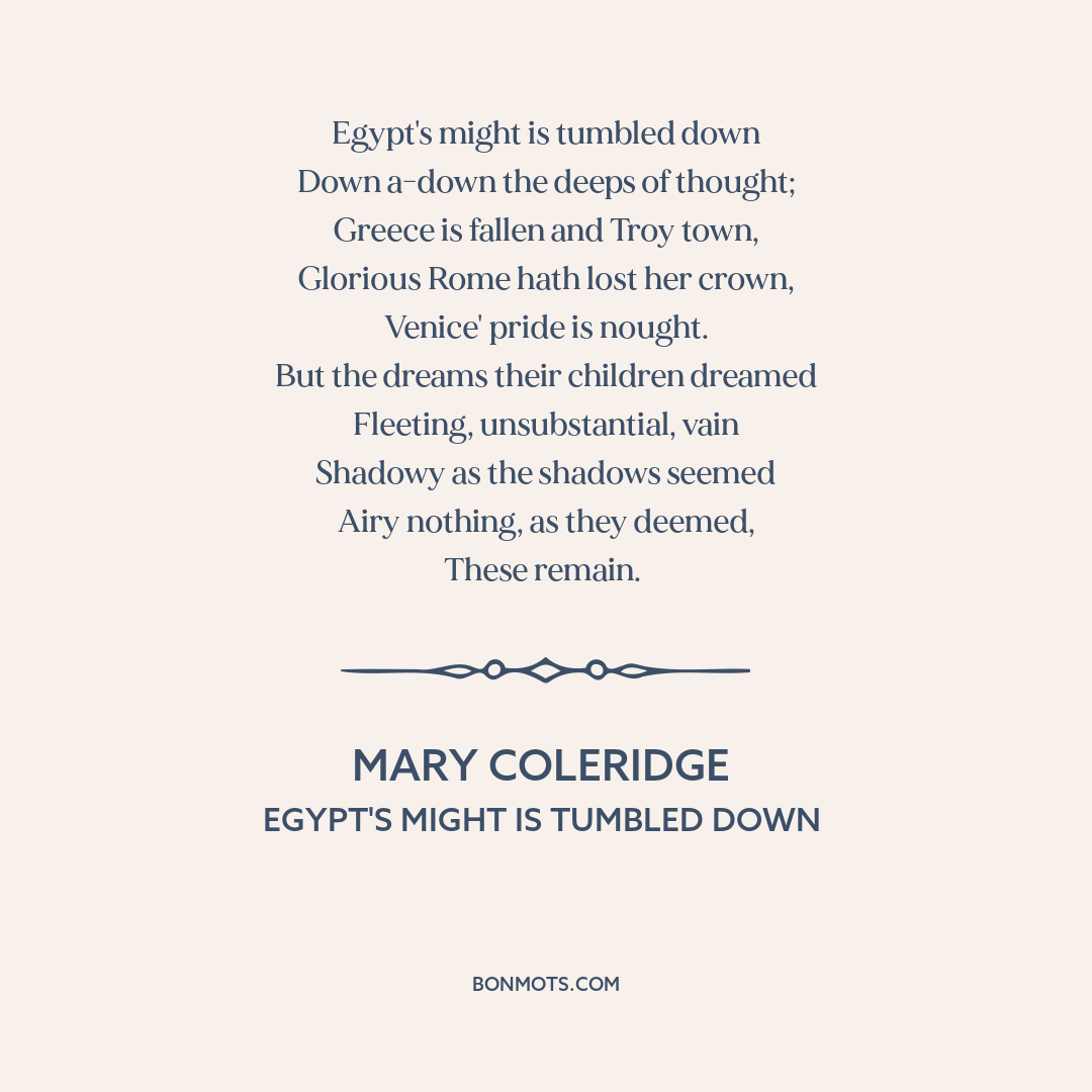 Coleridge, Mary. "Egypt's Might is Tumbled Down." Poems. London: Elkin Mathews, 1908, I. 1.