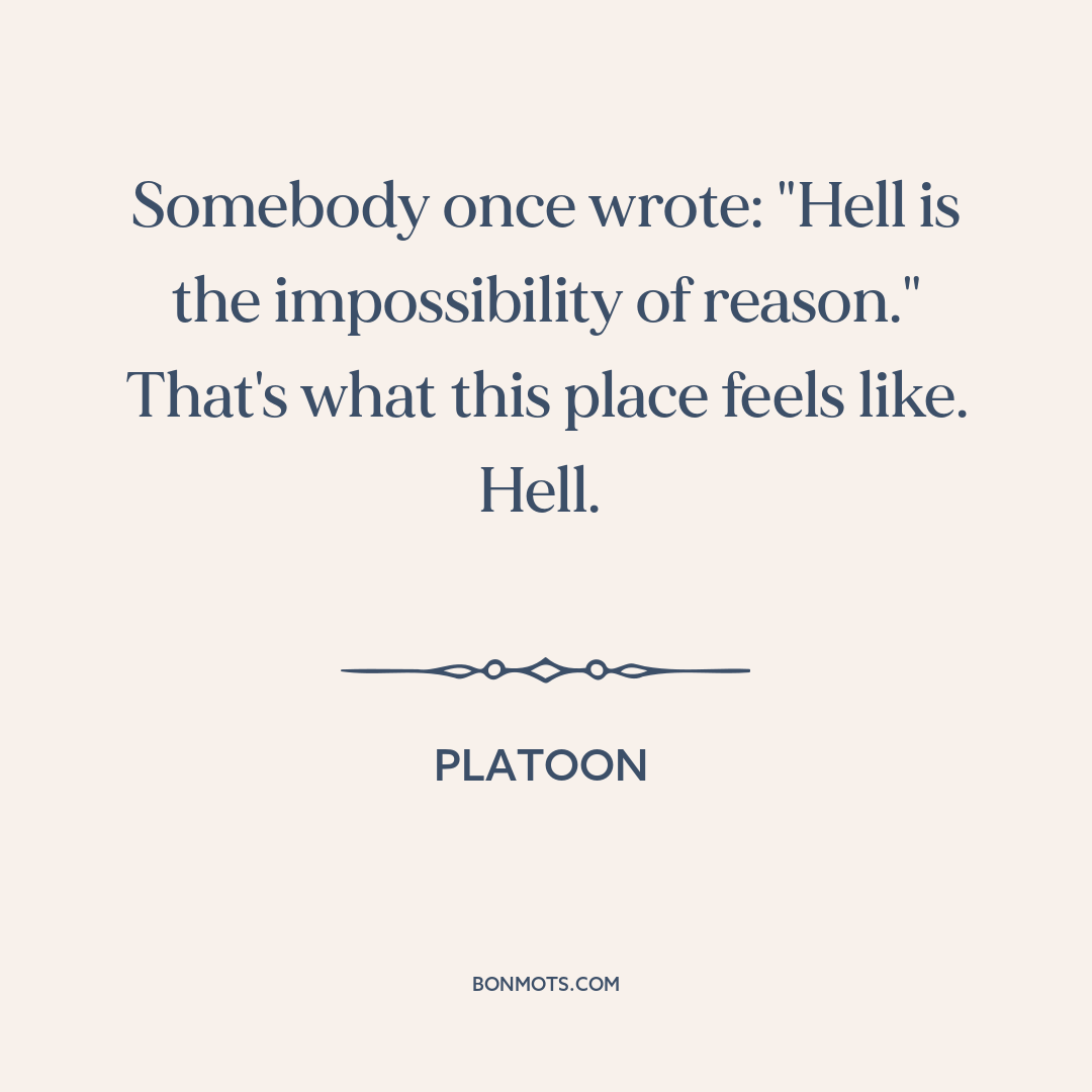 Somebody once wrote: "Hell is the impossibility of reason." That's what this place feels like. Hell.