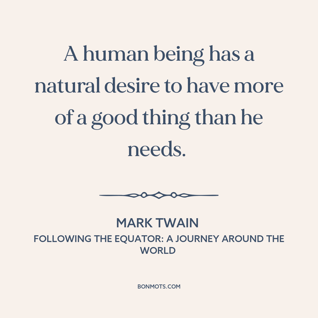 A human being has a natural desire to have more of a good thing than he needs.