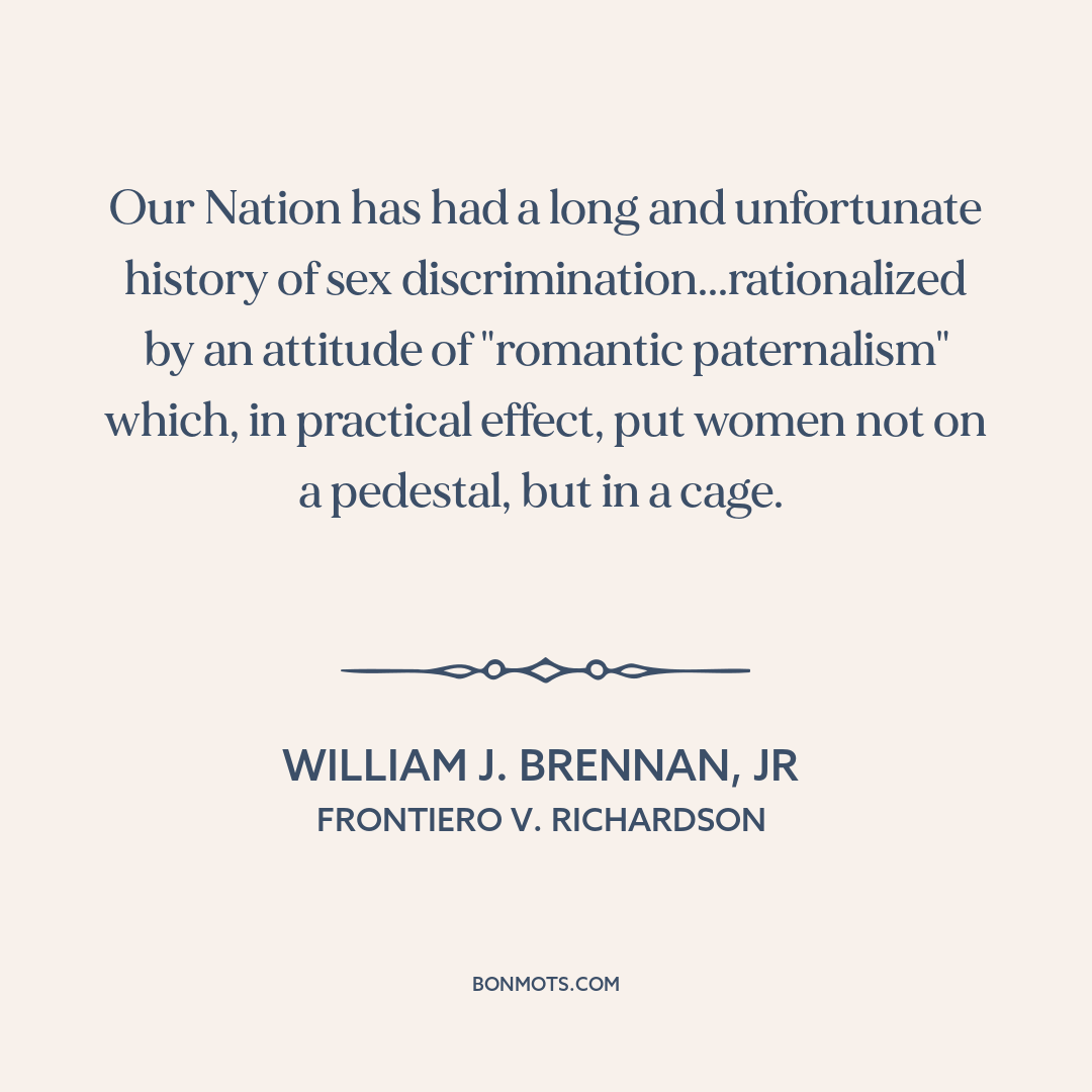 Our Nation has had a long and unfortunate history of sex discrimination...rationalized by an attitude of "romantic paternalism" which, in practical effect, put women not on a pedestal, but in a cage.