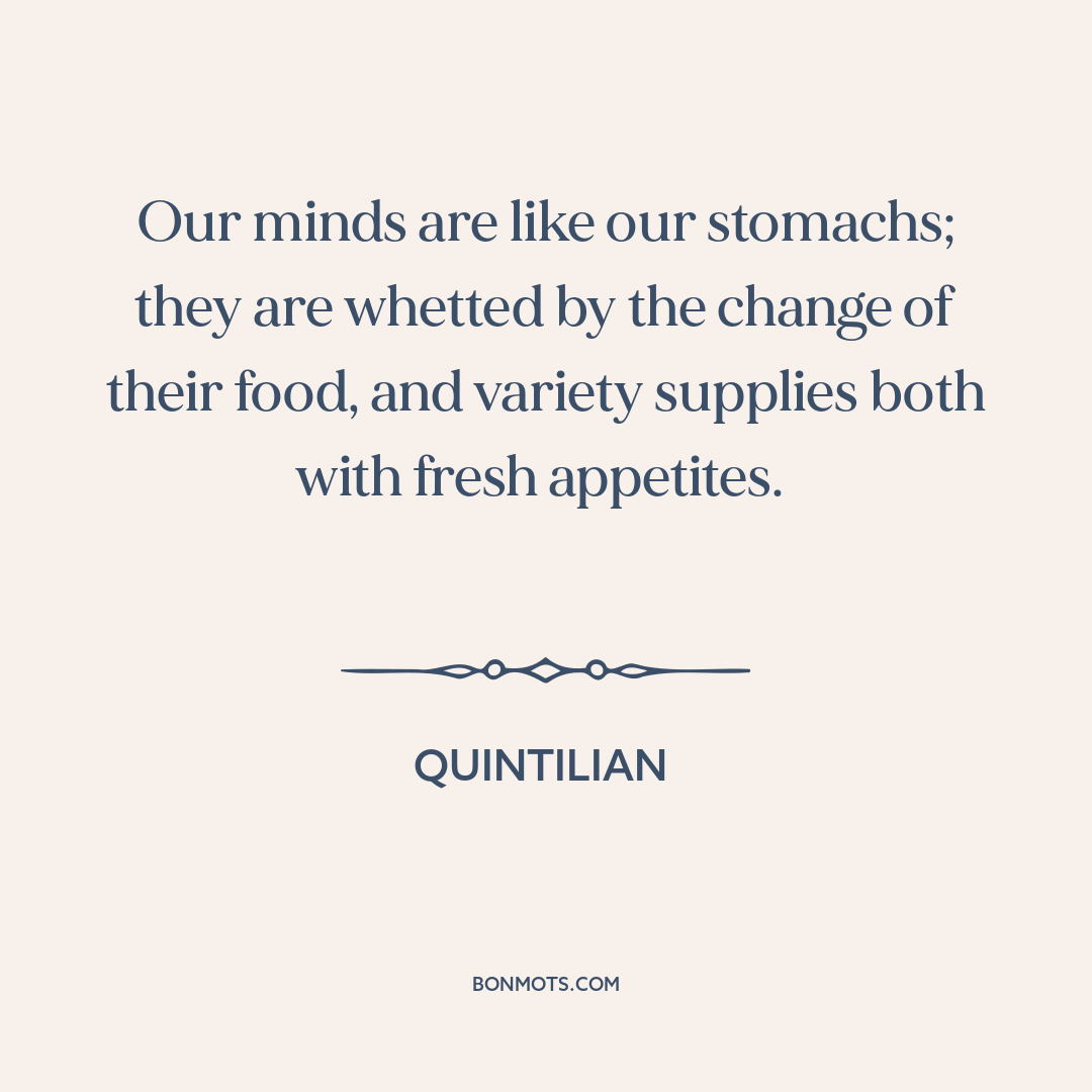 Our minds are like our stomachs; they are whetted by the change of their food, and variety supplies both with fresh appetites.