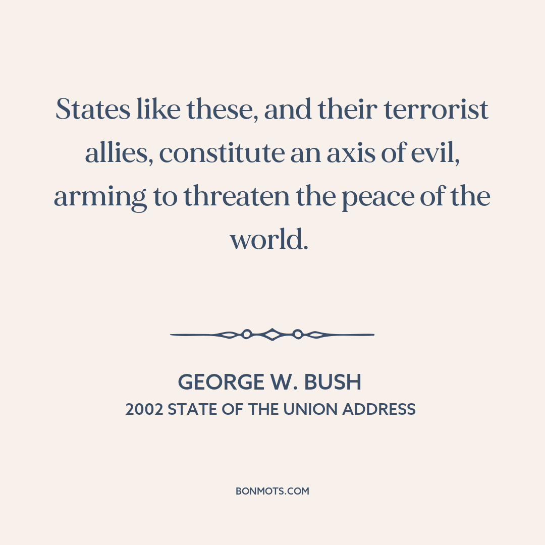 States like these, and their terrorist allies, constitute an axis of evil, arming to threaten the peace of the world.