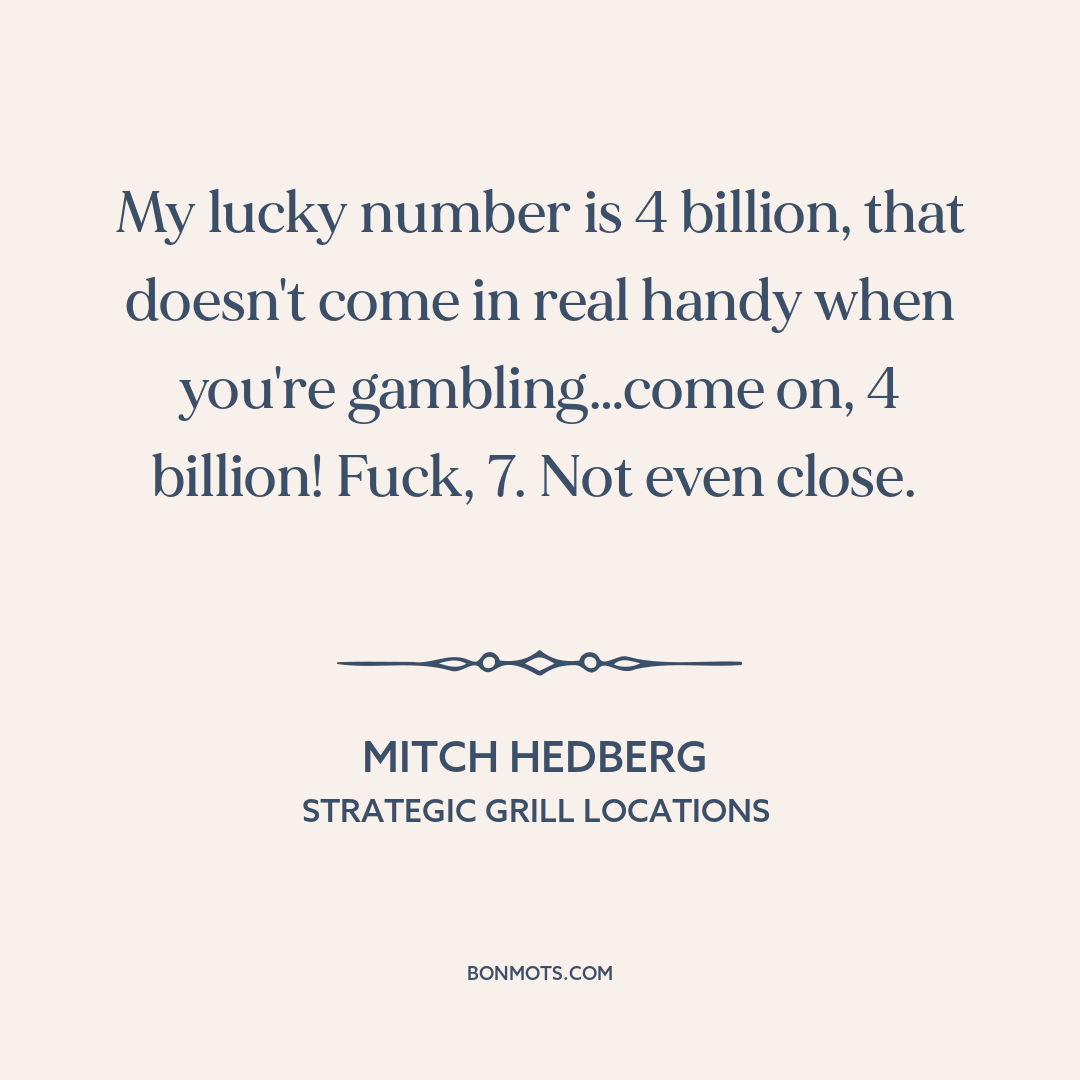 My lucky number is 4 billion, that doesn't come in real handy when you're gambling…come on, 4 billion! Fuck, 7. Not even close.
