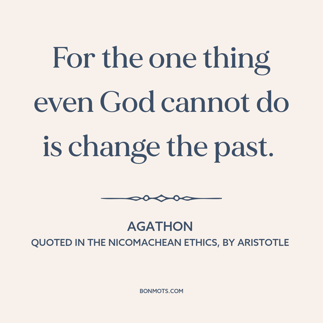 Agathon. Quoted in Nicomachean Ethics, written by Aristotle, translated by Terence Irwin. Hackett Publishing Company, 2019, bk. 6, ch. 2.