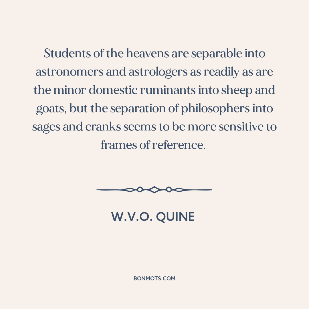 Students of the heavens are separable into astronomers and astrologers as readily as are the minor domestic ruminants into sheep and goats, but the separation of philosophers into sages and cranks seems to be more sensitive to frames of reference.