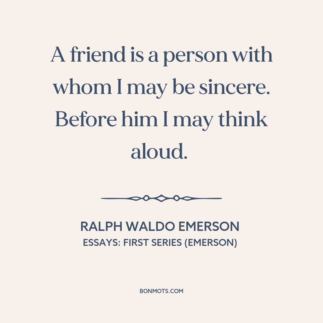 A friend is a person with whom I may be sincere. Before him I may think aloud.