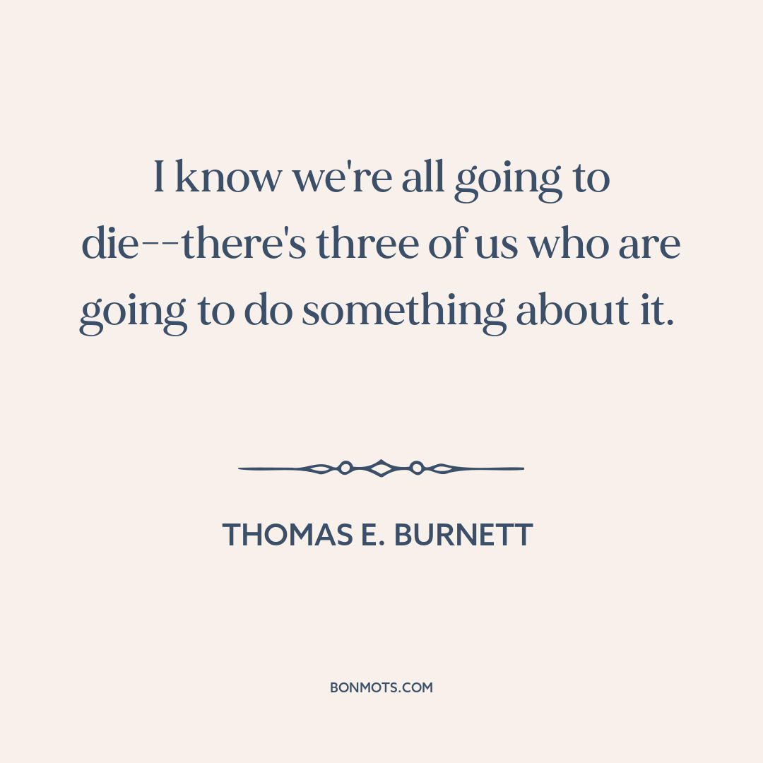 I know we're all going to die--there's three of us who are going to do something about it.
