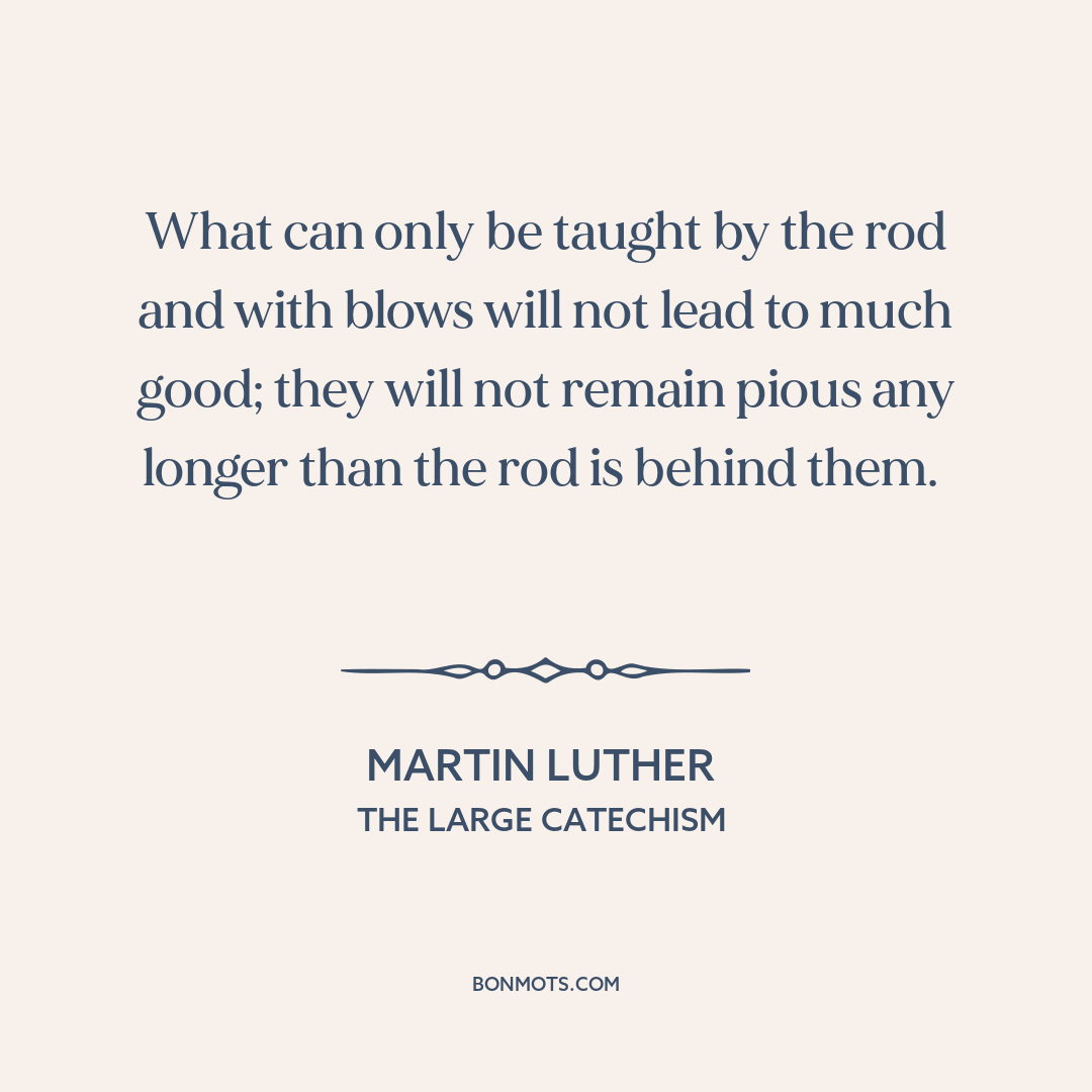 What can only be taught by the rod and with blows will not lead to much good; they will not remain pious any longer than the rod is behind them.