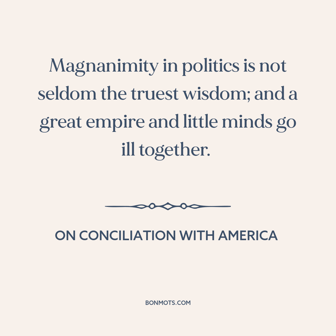 Magnanimity in politics is not seldom the truest wisdom; and a great empire and little minds go ill together.